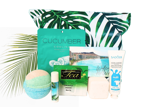 In addition, you can enjoy a cup of tea while relaxing in the tub or after indulging in an at-home spa day. And don't forget to send someone special a postcard from Hawaii included within this pack!
